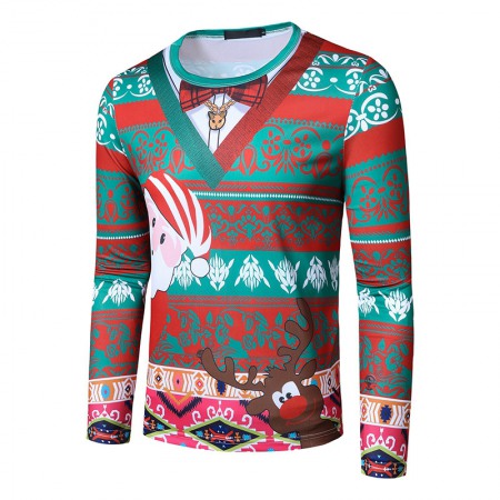 New 3D Personality Printing Fashion Men's Christmas Pattern Long-Sleeved T-Shirt