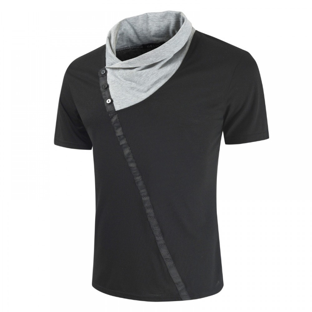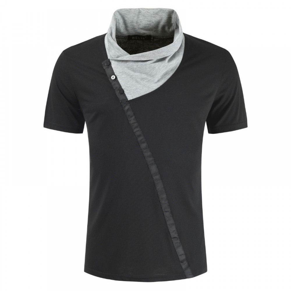 Men's Knitting Personality Pile Collar Mens Casual Slim Long-Sleeved T-Shirt