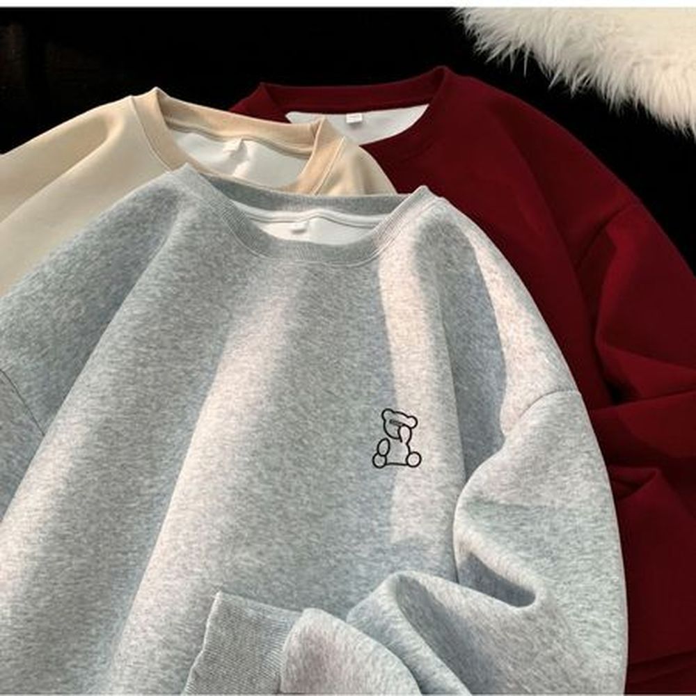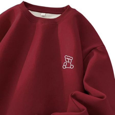 Men's Retro Bear Print Hoodie Crew Neck Sweatshirt