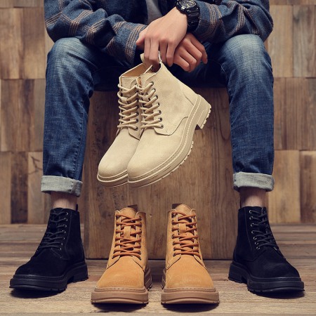Men's Martin Boots New Leather Boots Casual Mid-Cut Boots High-Top Men's Shoes