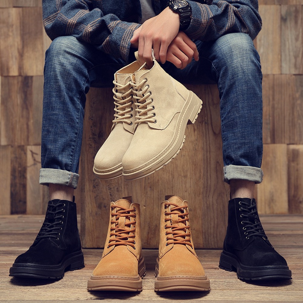 Men's Leather Martin Boots Winter Mens Boots Casual British Tooling Shoes Boots Men