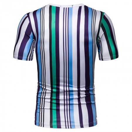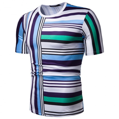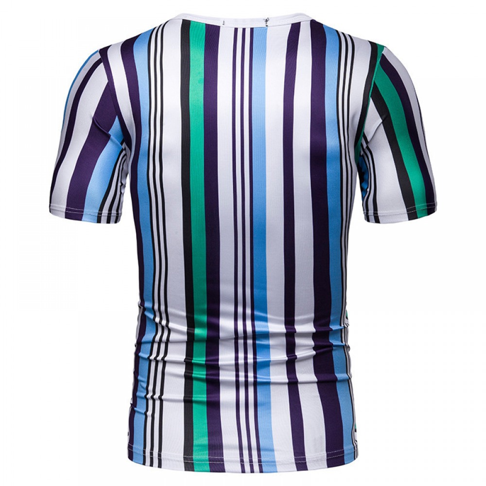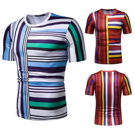 New Summer Men's Short-Sleeved T-Shirt Men's Contrast Striped Slim Casual T-Shirt