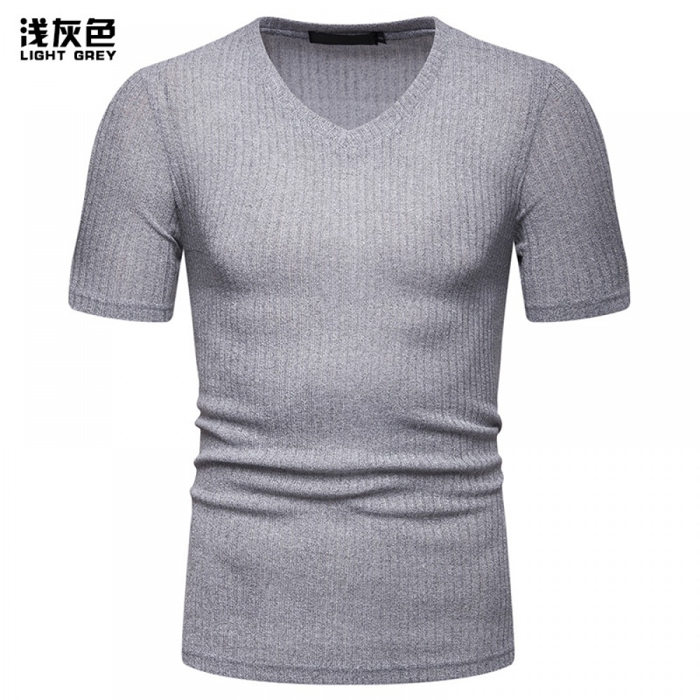 New Summer Thin High Stretch Men's V Short Sleeve T-Shirt